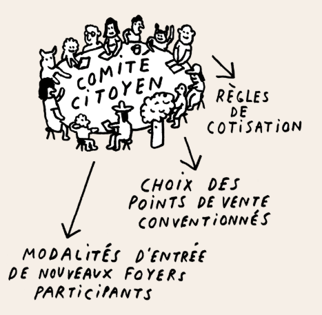 La caisse est un projet impliquant de multiples acteurs ! Des habitant·es de Montpellier qui participent au projet et dont certains sont membres du comité cioyen de l’alimentation, des associations, coopératives et collectivités dans le collectif de coopération, une équipe salariée et un conseil scientifique !